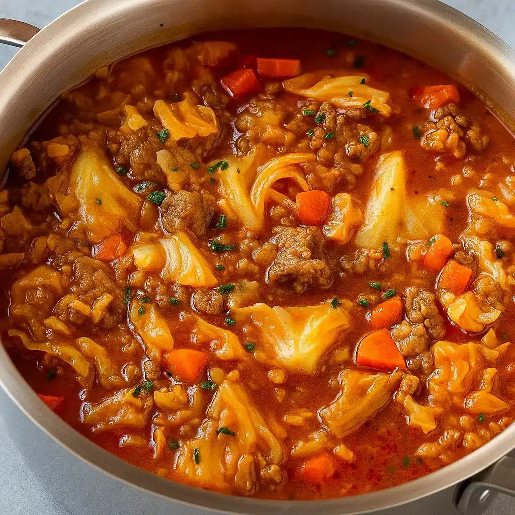 This Cabbage Roll Soup Recipe is like a warm hug in a bowl—comforting, hearty, and packed with flavor. If you’ve ever craved classic cabbage rolls but didn’t want to fuss with all that rolling, this soup is your shortcut to bliss. It’s got all the beloved ingredients—savory beef, tender cabbage, and that rich tomato base—without the extra steps. Whether it’s a cold night or you’re just craving something cozy, this cabbage roll soup will hit the spot. Plus, it’s perfect for busy weeknights, and even picky eaters will go back for seconds.