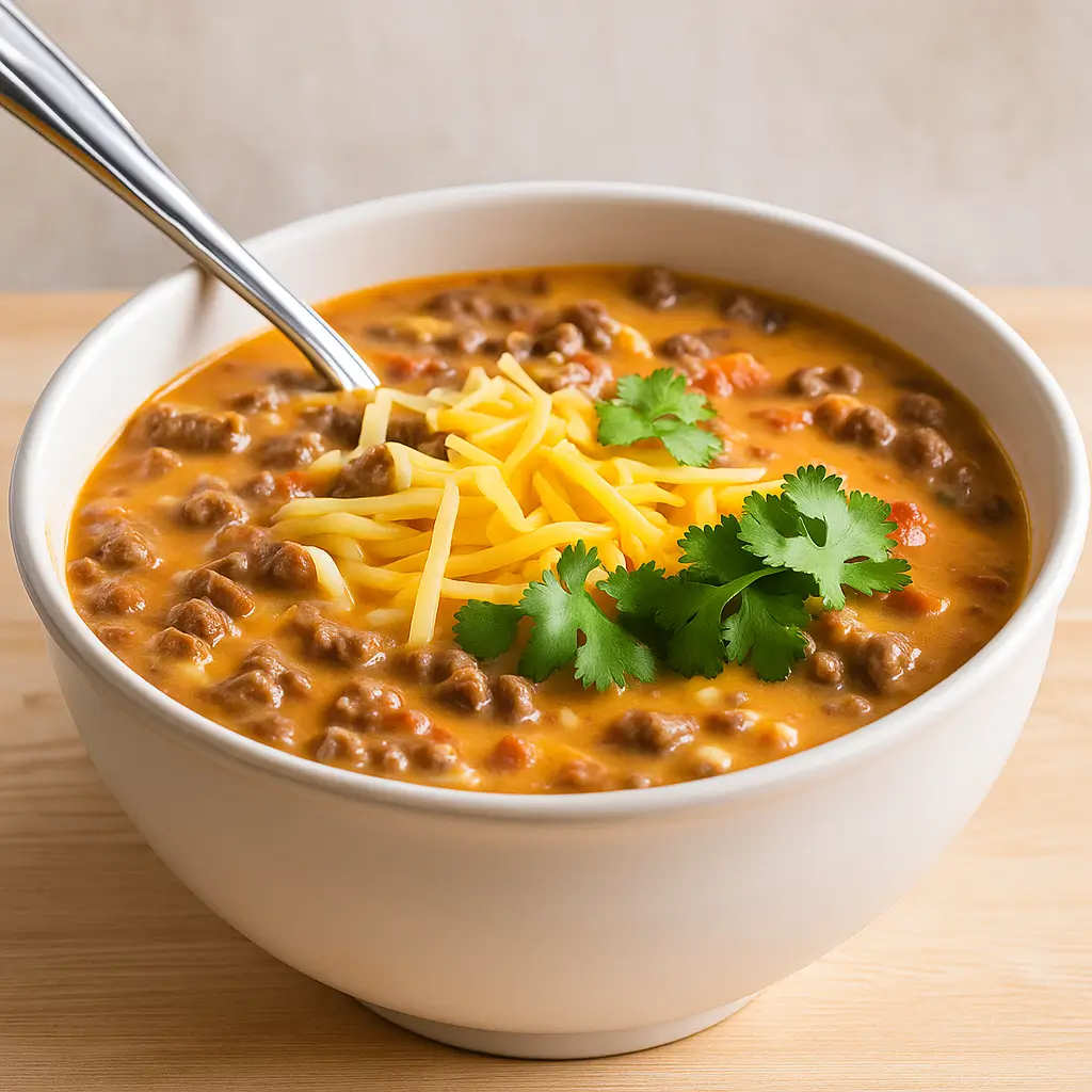 Once the cheese has melted, give your Creamy Cheesy Ground Beef Taco Soup Recipe a taste test. Add salt and pepper to your liking. If you prefer more spice, toss in a pinch of cayenne or a few diced jalapeños. If it’s too thick for your liking, pour in a bit more broth until it reaches your desired consistency.