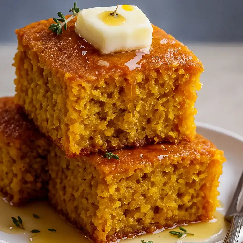 Soft, sweet, and spiced just right, this cornbread pairs the earthy taste of sweet potatoes with a luscious cinnamon honey butter, making every bite heavenly.
