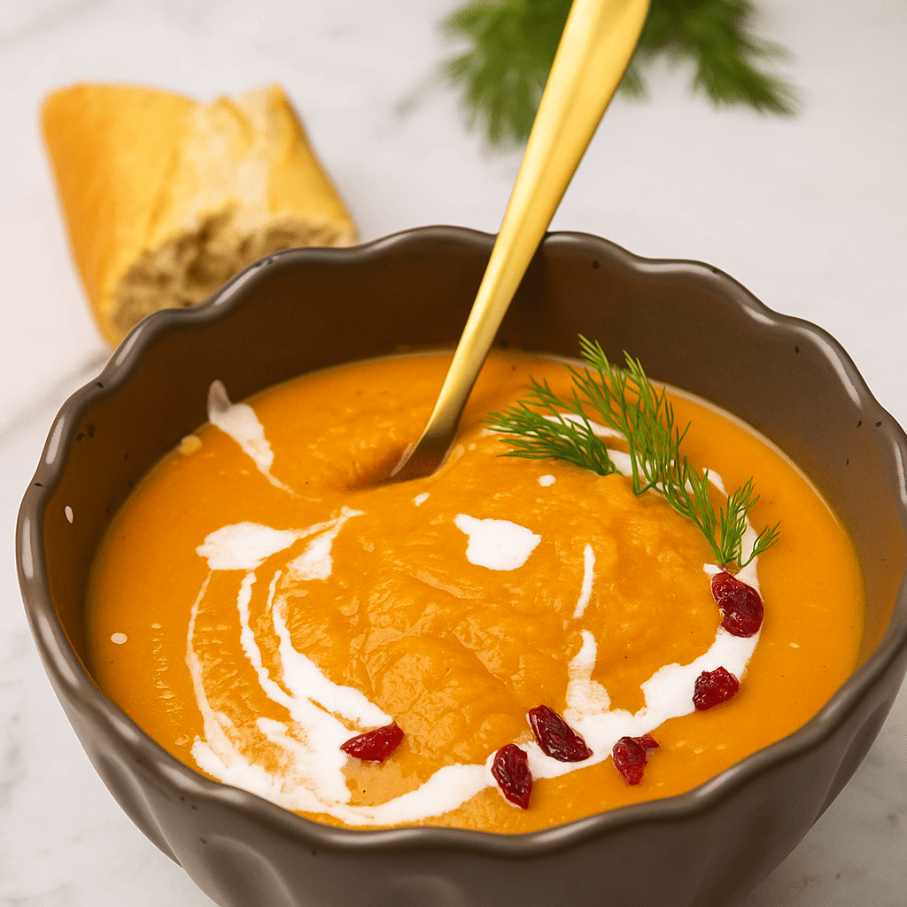 Easy Spiced Carrot and Sweet Potato Soup is a smooth, creamy, veggie-packed dish that’s both soothing and satisfying. It’s made by simmering carrots and sweet potatoes with onions, broth, and just enough spice (we’re talking cinnamon, ginger, and turmeric—aka cozy in a bowl) to make your taste buds do a happy dance. Then it’s blended into silky perfection and served with a swirl of cream (optional but highly recommended).