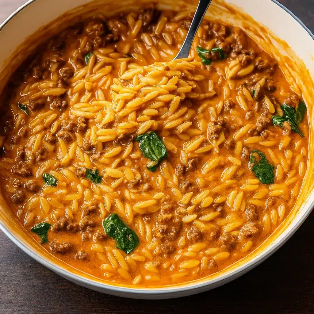 Ground Beef Orzo with Tomato Cream Sauce is your new best friend on busy nights when everyone’s hungry right now and takeout just isn’t cutting it. This hearty one-pan wonder blends juicy ground beef, tender orzo, and a tomato cream sauce that feels way fancier than it really is. It’s creamy, rich, and surprisingly satisfying for something that comes together so fast. Even picky eaters might request seconds—yes, even that kid.