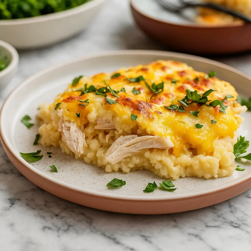 At its heart, Healthy Chicken Cauliflower Rice Casserole is a lighter take on comfort food. Instead of carb-heavy rice or pasta, it uses cauliflower rice as the base, giving you all the texture without the heaviness. Shredded chicken provides protein, while cream cheese (or Greek yogurt if you’re keeping it lean) adds that irresistible creamy bite. Topped with melty cheddar, it bakes into a golden, cheesy crust that screams comfort food. This dish is perfect for busy moms, meal preppers, or anyone who wants a wholesome meal that doesn’t feel like “diet food.”