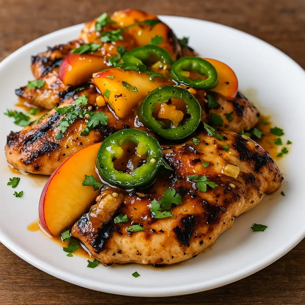 Taste the bold fusion of zesty jalapenos and sweet peaches in this succulent Jalapeno Peach Chicken. Each bite is a harmony of spicy, tangy, and fruity flavors grilled to perfection. A culinary adventure awaits!